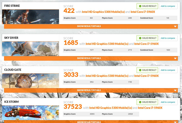 以下、Venue 11 Pro 7000シリーズで行ったベンチマークテストの結果です。